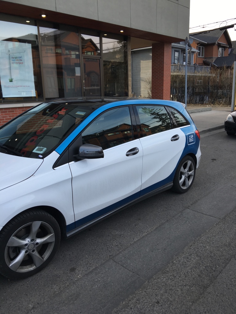 E claro, os valores variam conforme as localidades. Aqui em Calgary, o minuto do Car2Go custa C$0,40 (quarenta centavos). Se tu usar ele por uma hora, ao invés de cobrarem por minuto, a cobrança vira por hora, custando C$14,00 (quatorze dólares) a hora. E se tu resolver ficar mais tempo com o carro, a diária custa C$84,00 (oitenta e quatro dólares). Ou seja, vale muito a pena.