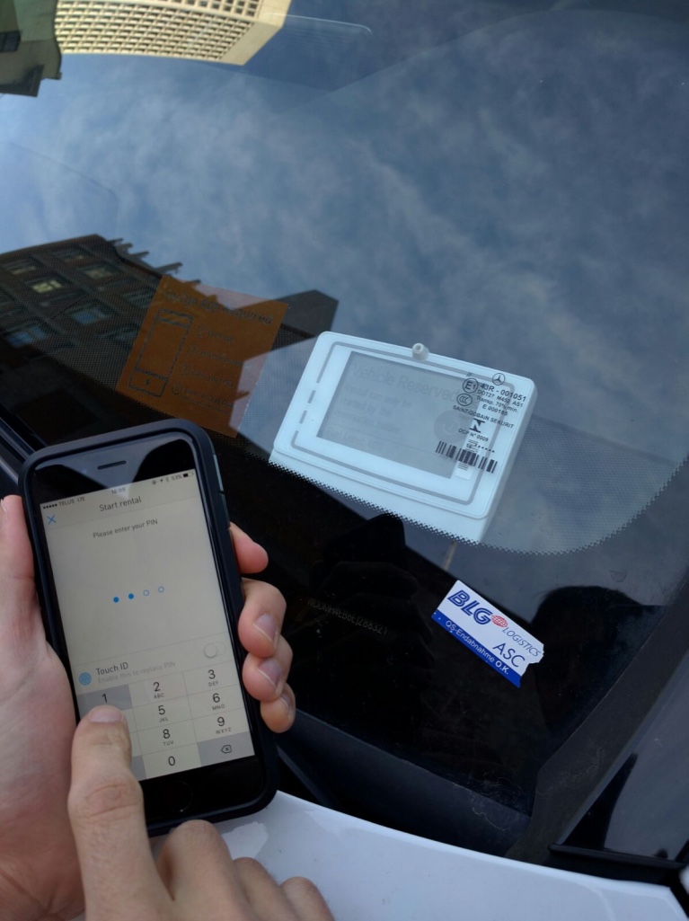 A gente sempre procura primeiro o carro no aplicativo e pode deixar ele reservado pra ti por 30 minutos (pra dar tempo de chegar no carro, às vezes eles não estão tão perto assim da tua localização).