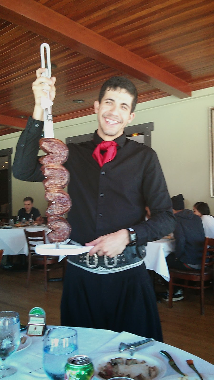 Fora o Museu, fizemos muitas outras coisas. Na sexta-feira fui comer um churrasco, acreditam?! Simmmmmmmmmm! Os cara de bombacha, servindo uma picanha! haha Tava super bom, comi arroz e feijão também! Ta aí a foto pra provar!
