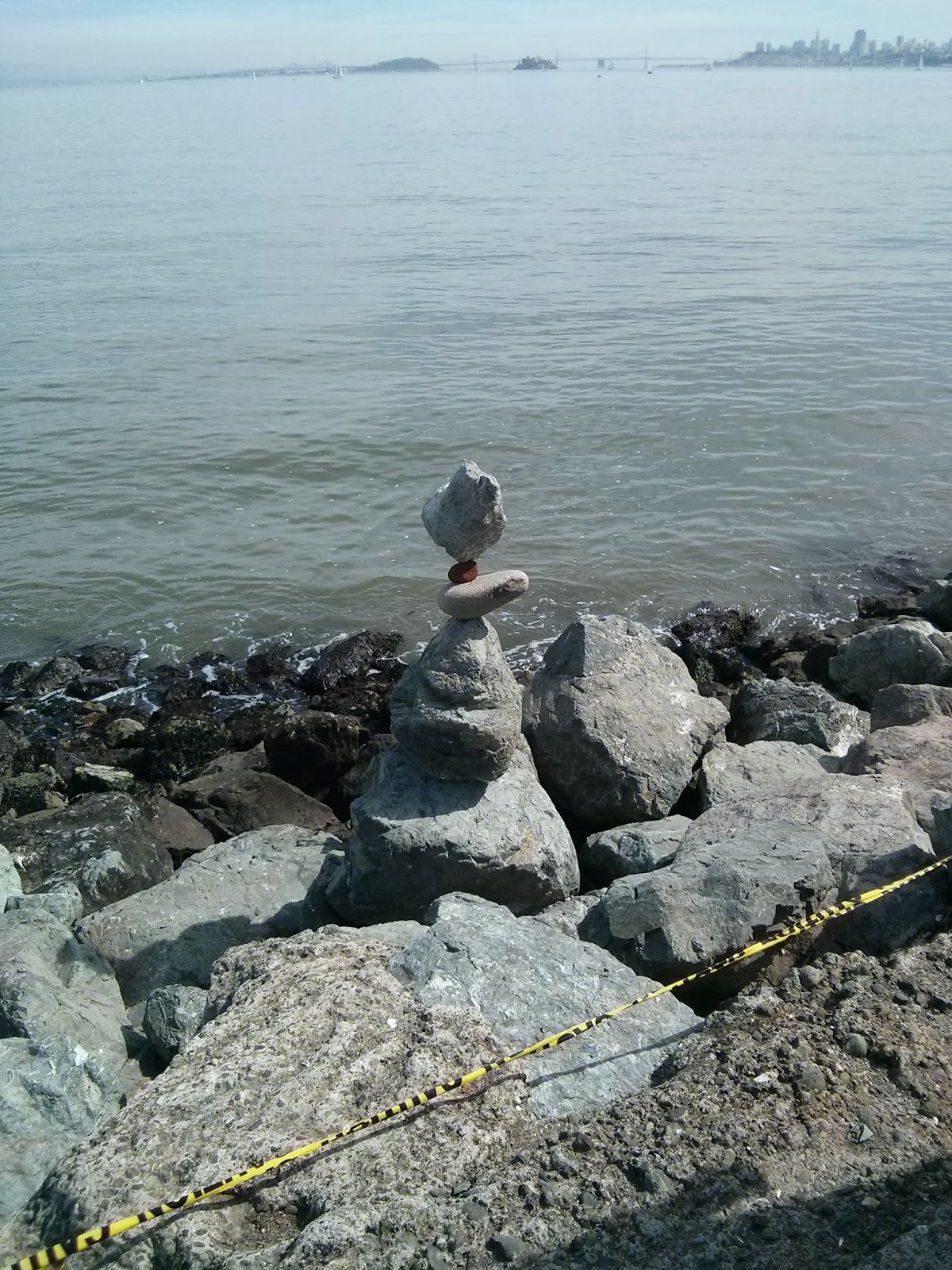 Aqui já é em Salsalito. Tinha esse cara mega aleatório empilhando pedras e cobrando pelas fotos! haha
