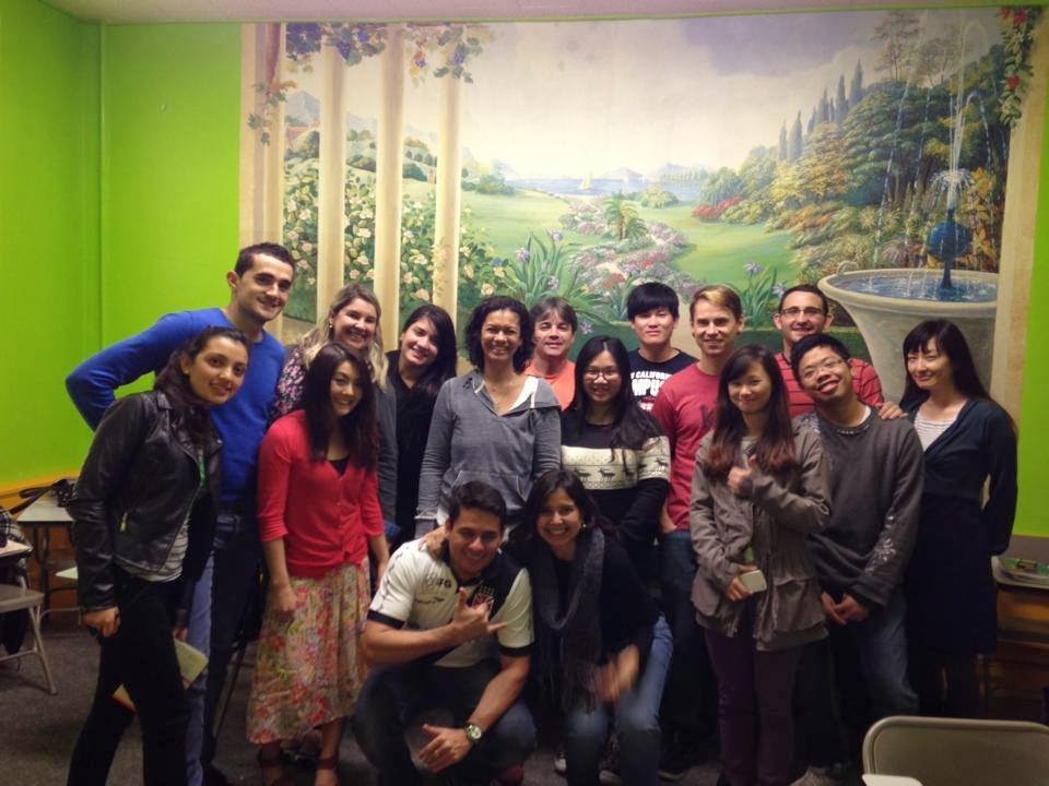 Minha turma super querida! Morgan meu professor é o de camiseta vermelha, com uma mecha loira e alargadores nas orelhas :)
