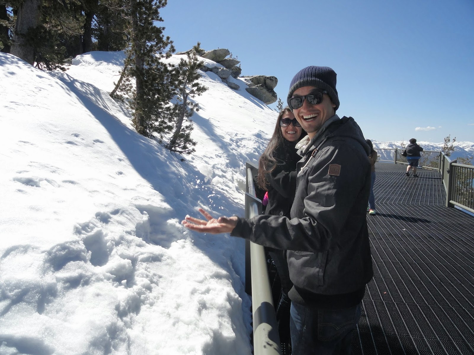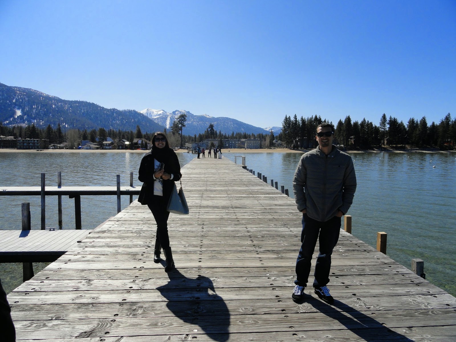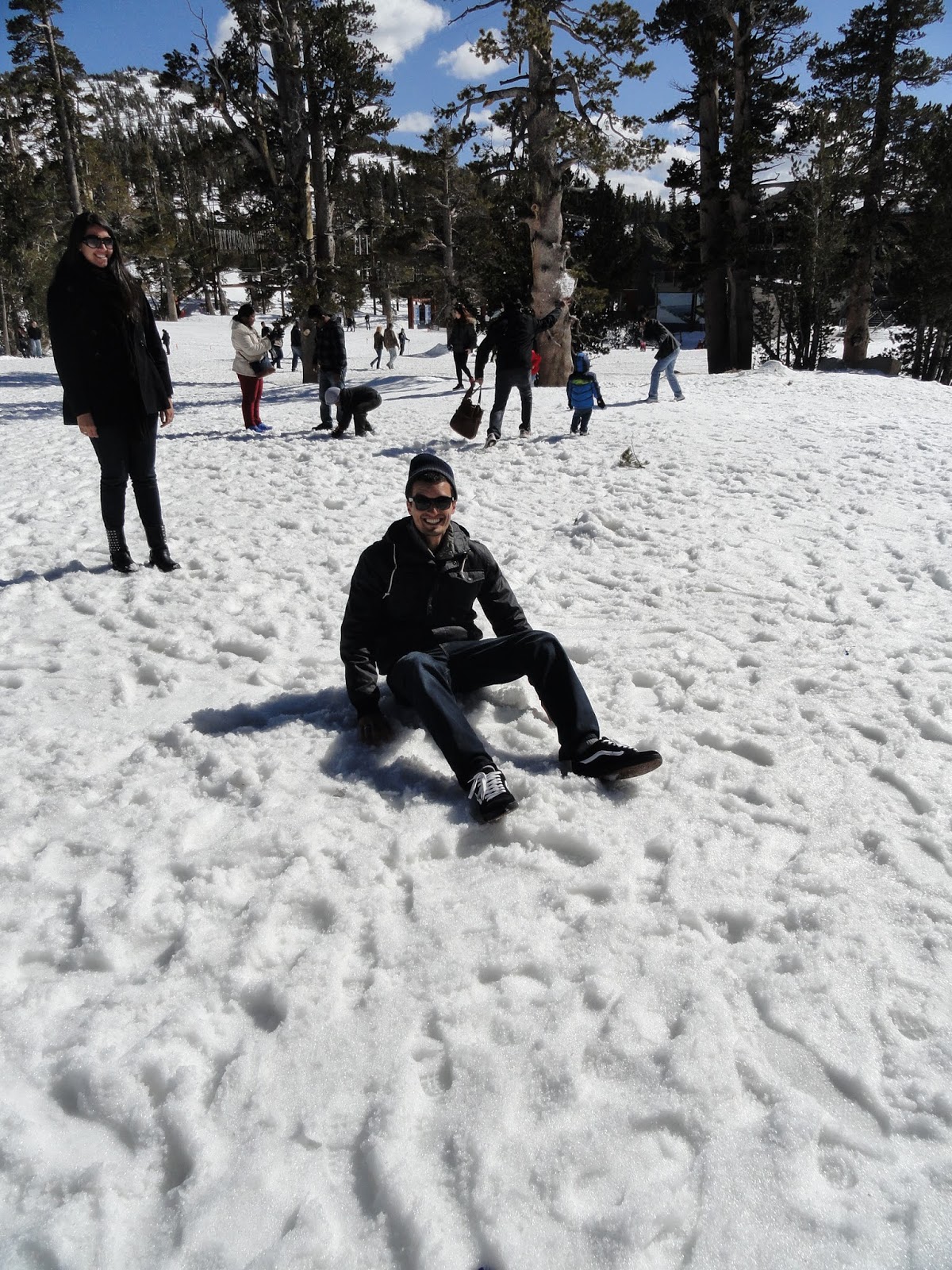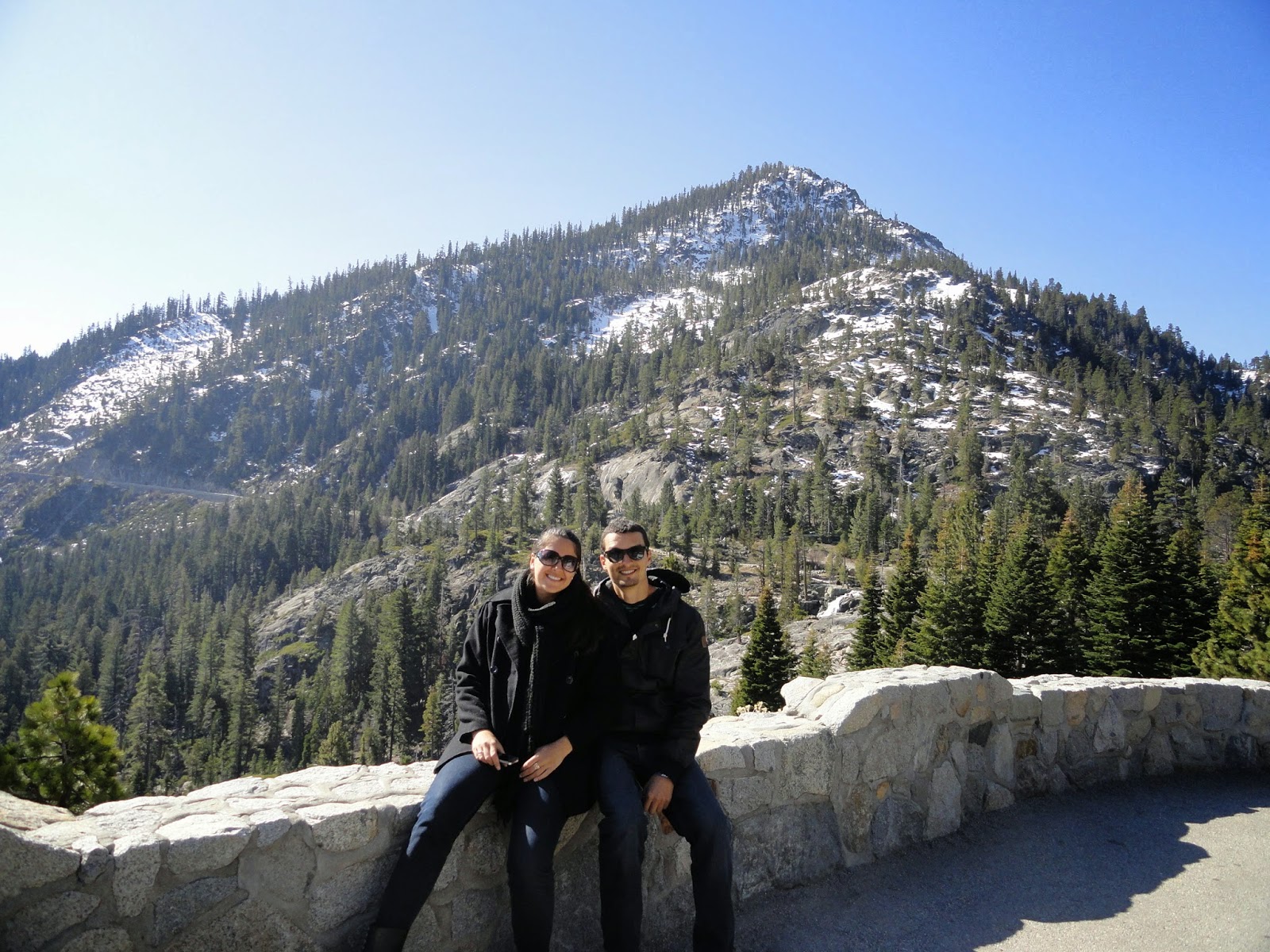Fomos conhecer Lake Tahoe e nos maravilhamos com o que vimos! Alugamos um carro super legal (procuramos valores na internet e ele vale no Brasil só uns R$250.000,00). Vimos a neve pela primeira vez e passamos um frio bem razoável. De verdade: nada que não estejamos acostumados no Rio Grande do Sul.