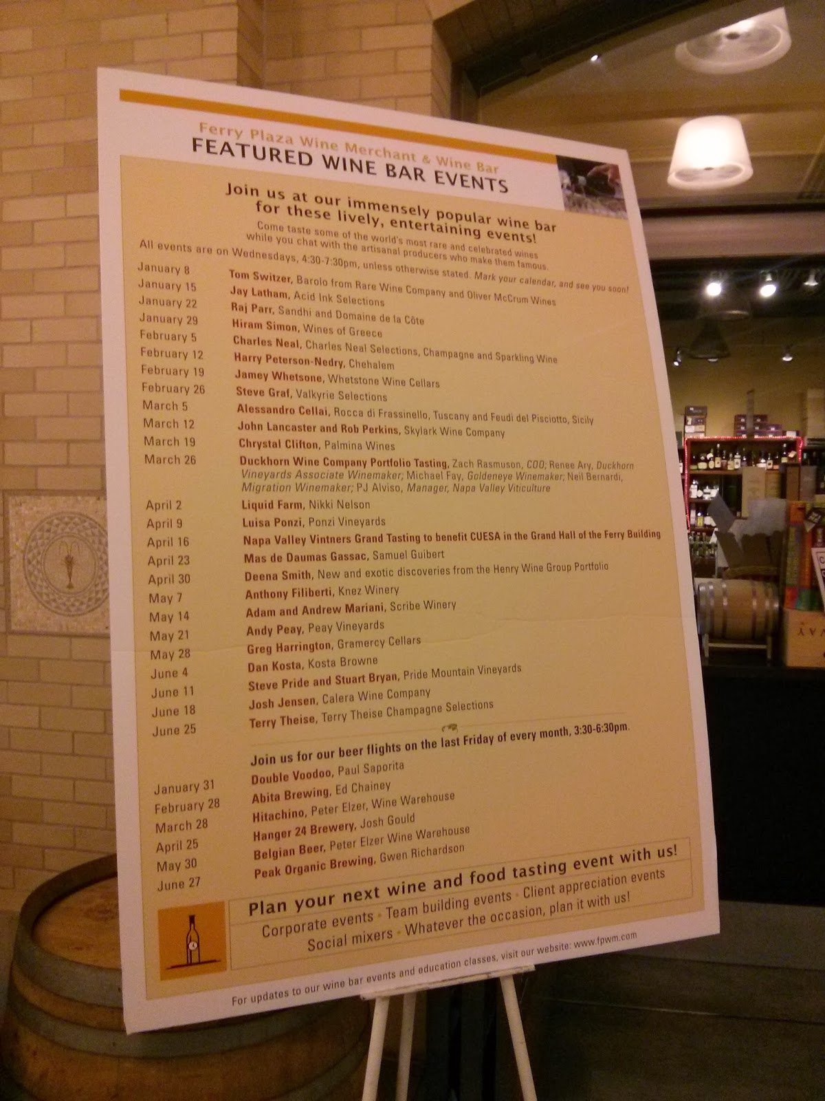 Programação dos eventos de vinho no Ferry Building (Lembrei do Carlos, meu primo!)