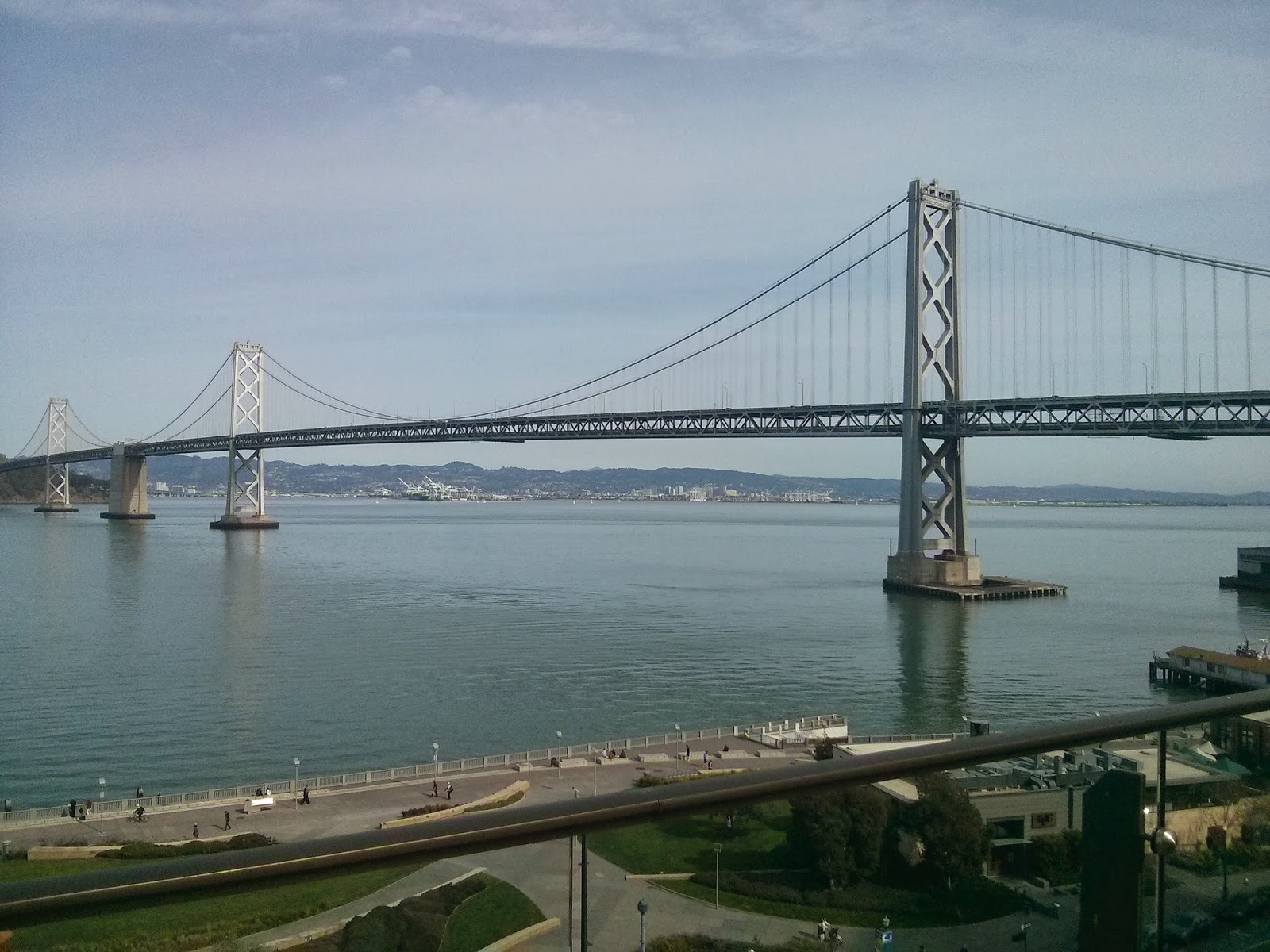 Essa semana eu também fiz uma visita no local de trabalho do Fernando. Fui conhecer a famosa vista da Bay Bridge que a cafeteria da Gap tem. E claro, eu fiquei maravilhada!! É muito lindo aquele lugar!